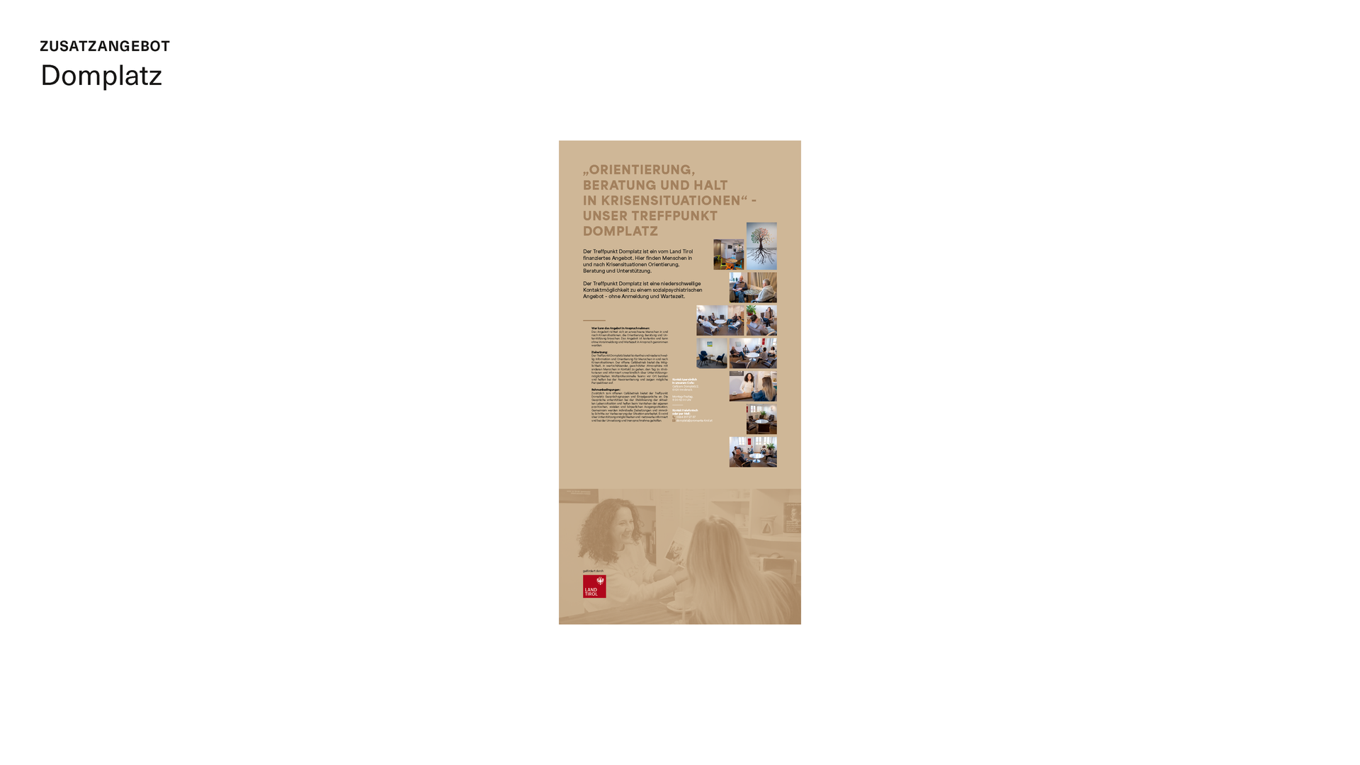 Präsentation auf Anfrage. Gerne senden wir Ihnen die Präsentation persönlich zu. Senden Sie Ihre Anfrage bitte an office@promente-tirol.at